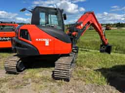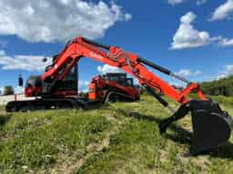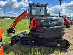 Kubota KX080-5S3 Compact Excavator. Cab/Heat/AC. Steel Tracks w/ Bolt-On Rubber Pad Set. Dozer Blade. Hyd Thumb. Quick Attack Coupler. 36" Trenching Bucket