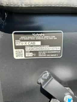 Kubota RTV-X2C-SKLH-1 Utility Vehicle. Cab. Standard Build. Orange Color. Bed Liner. HDMP Tires. Steel Wheels